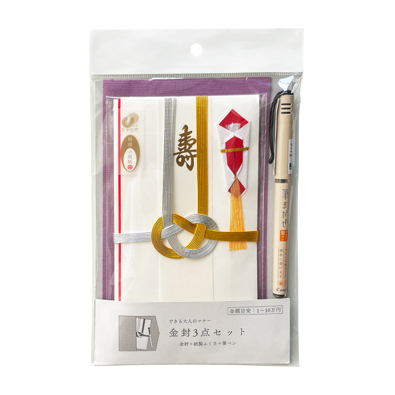 キ-S102 ながとや 金封3点セット(寿金封・ふくさ・筆ペン)結婚祝い
