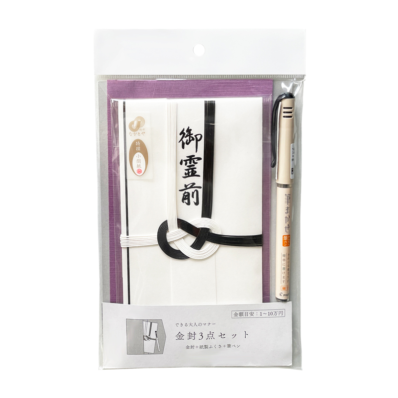 キ-S104 ながとや 金封3点セット(不祝儀金封・ふくさ・筆ペン)弔事・法要用