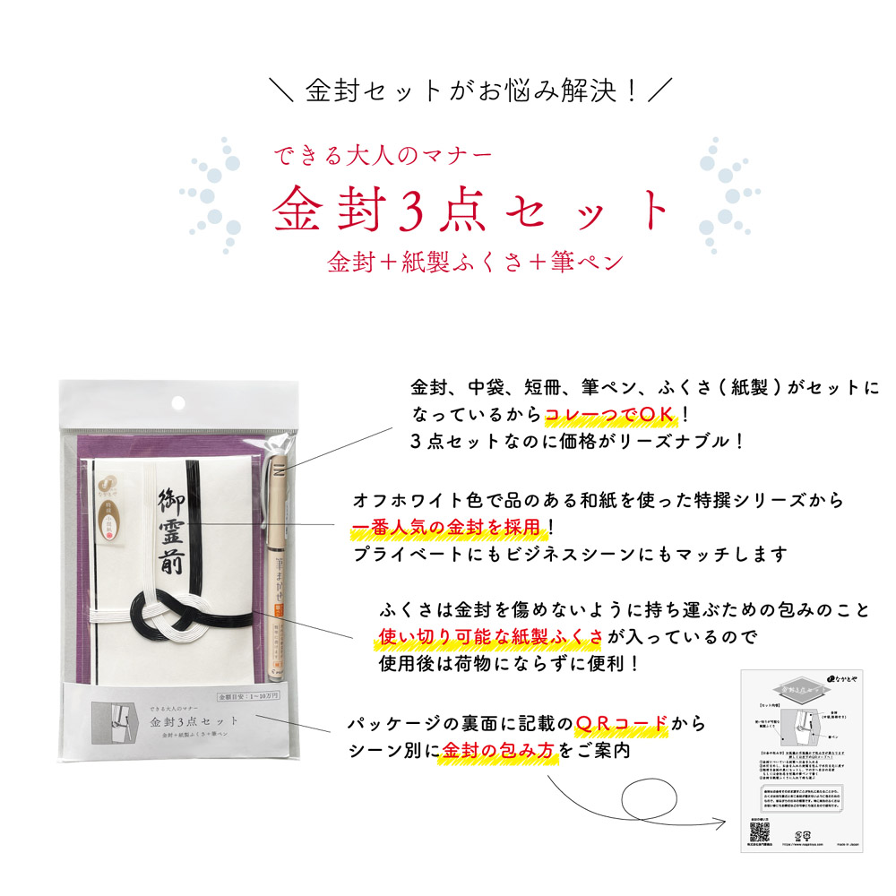 キ-S103 ながとや 金封3点セット(御霊前金封・ふくさ・筆ペン)お葬式用[0220103]